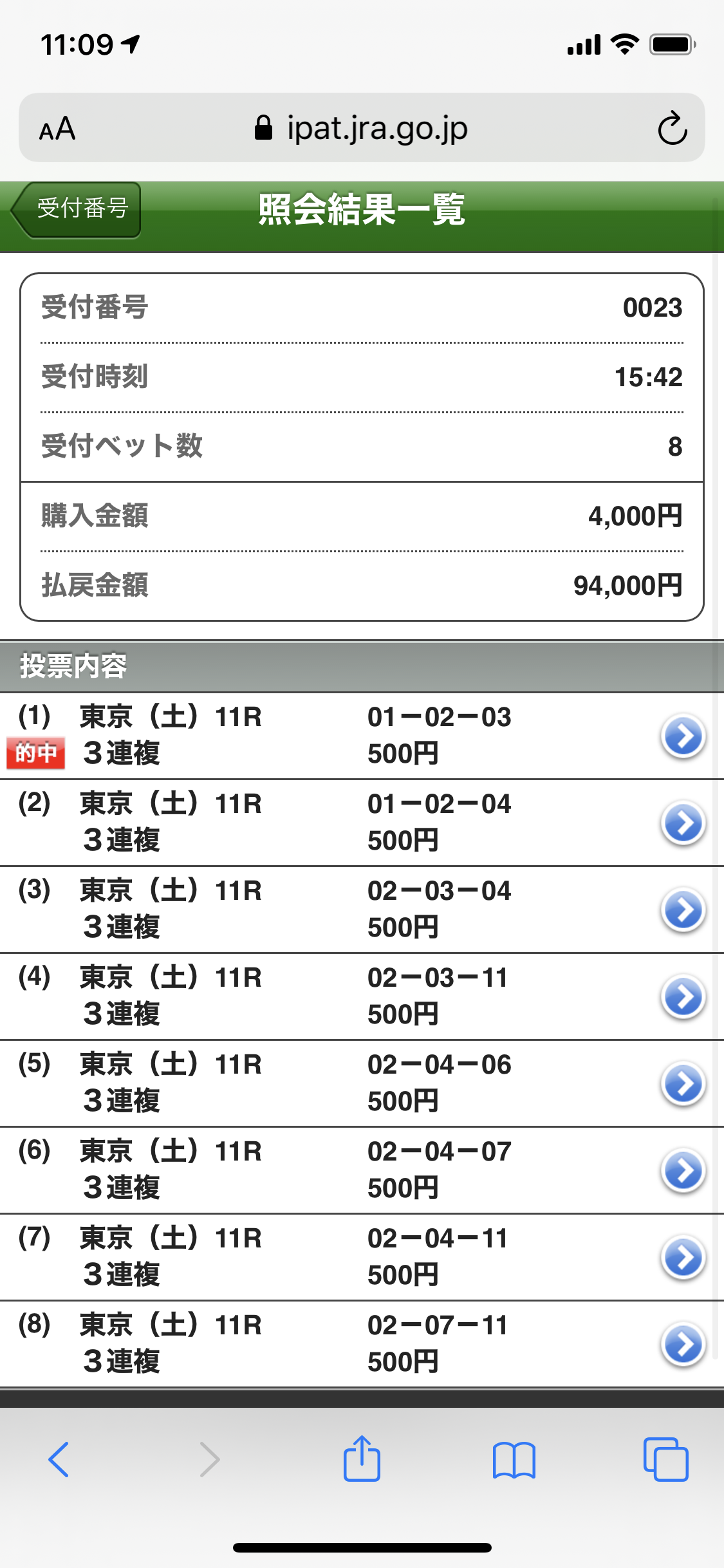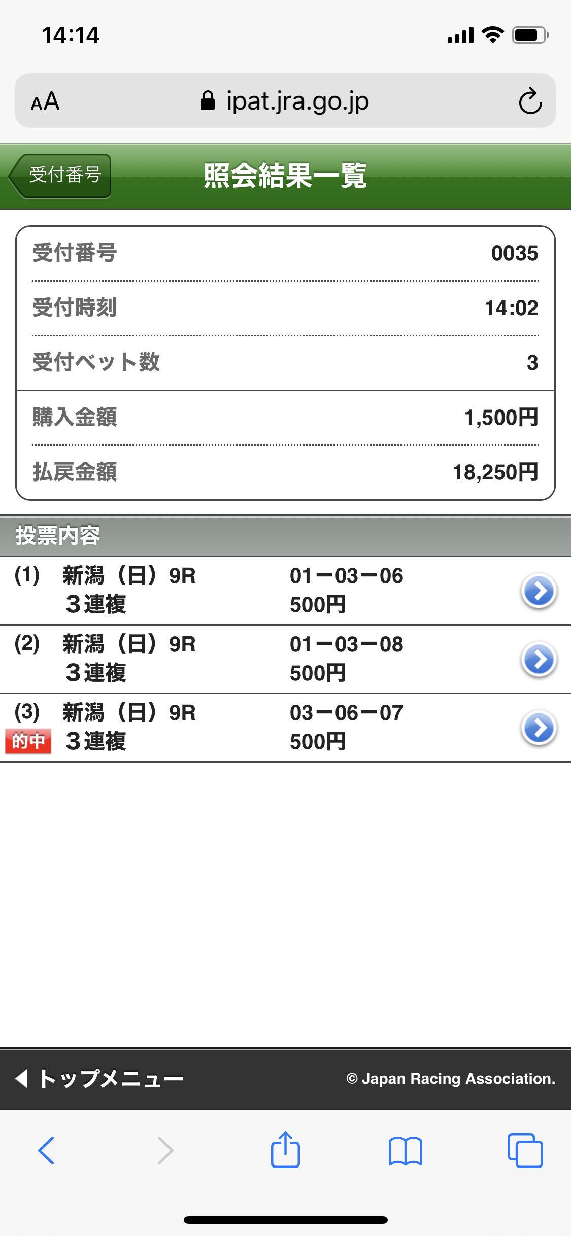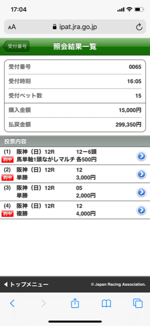 因みに、新潟最終の3連単も的中しましたが、ここは自分の規定オッズを無視して、どうしても買いたくて買った馬券なので、画像は割愛させていただきます。これをやめないと年間プラスは難しいんですよね。。また明日からもよろしくお願いします