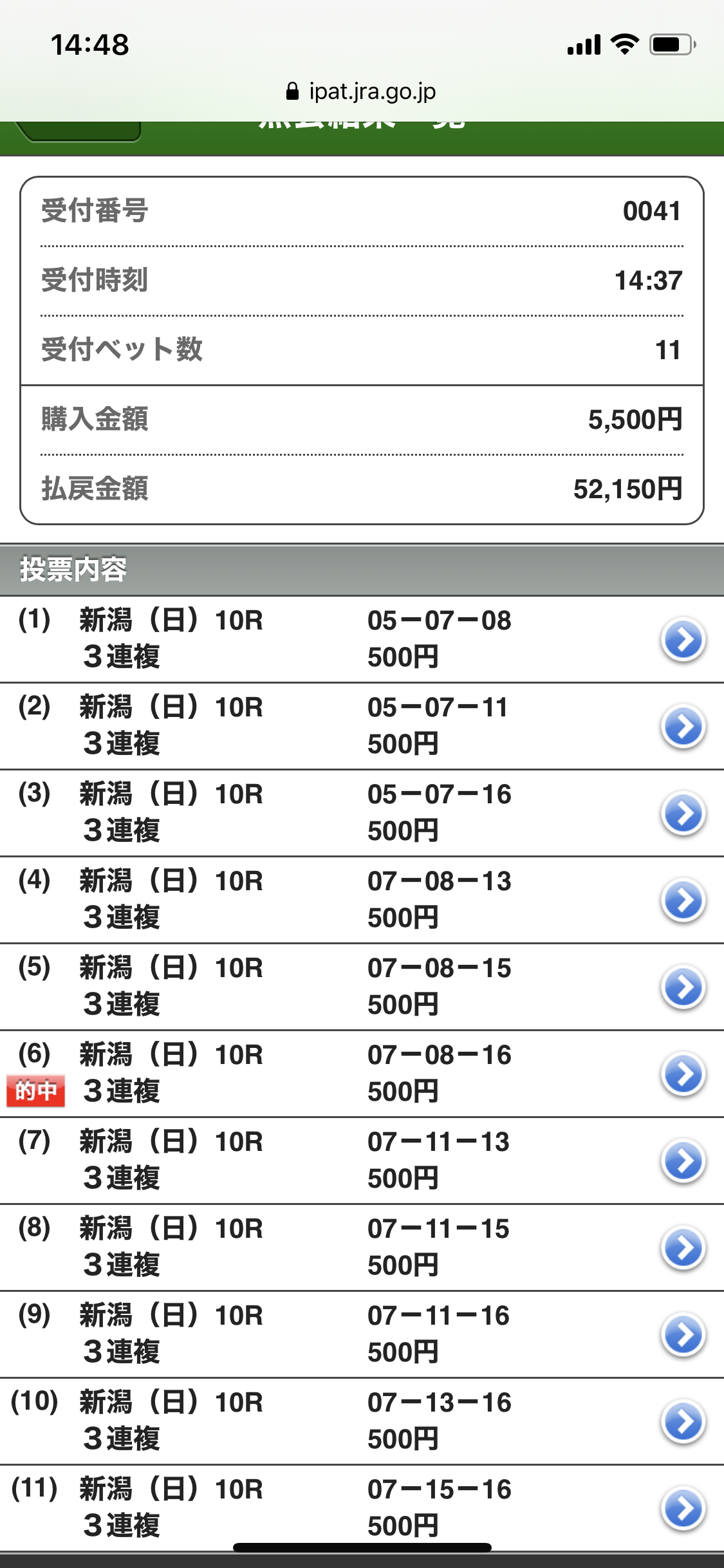 土日通して、3本的中!自分は3連系しか買わないのですが、今週は1頭抜けるレースが多噛み合ってきたら回収率ヤバいですね