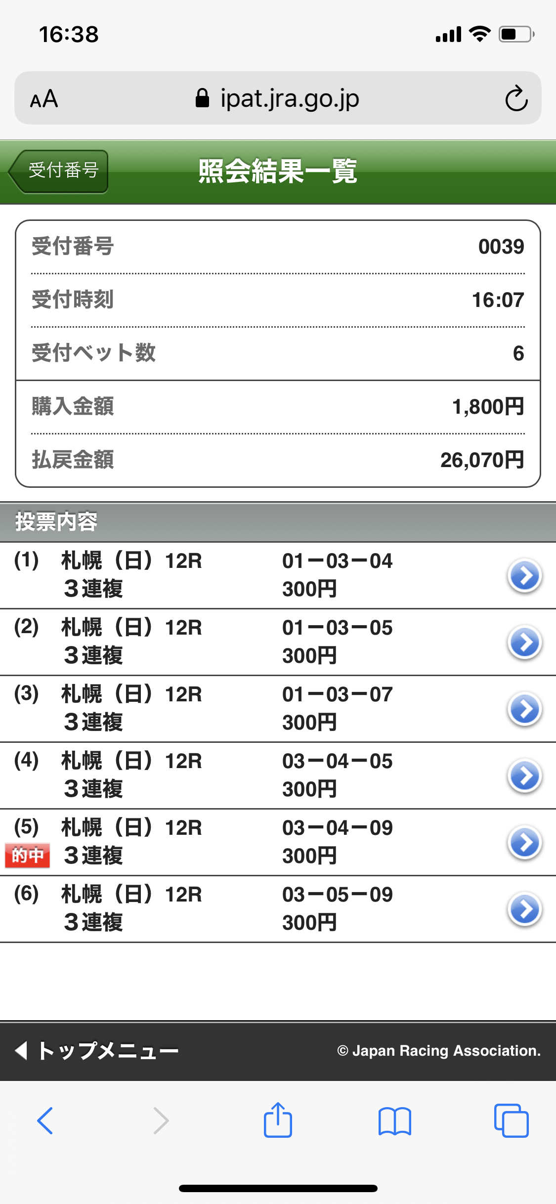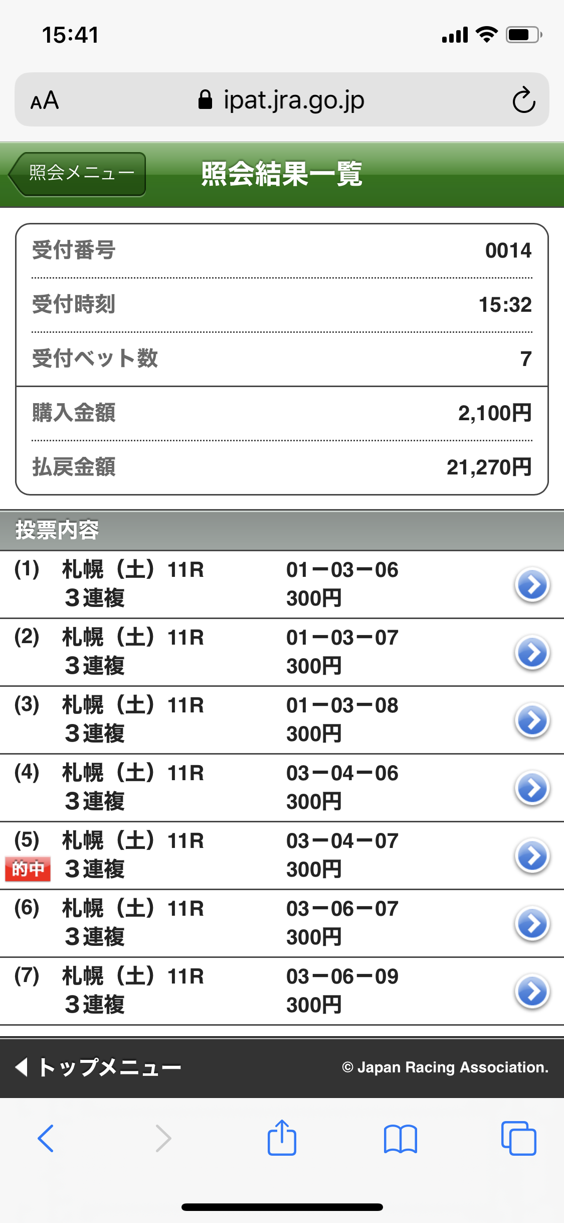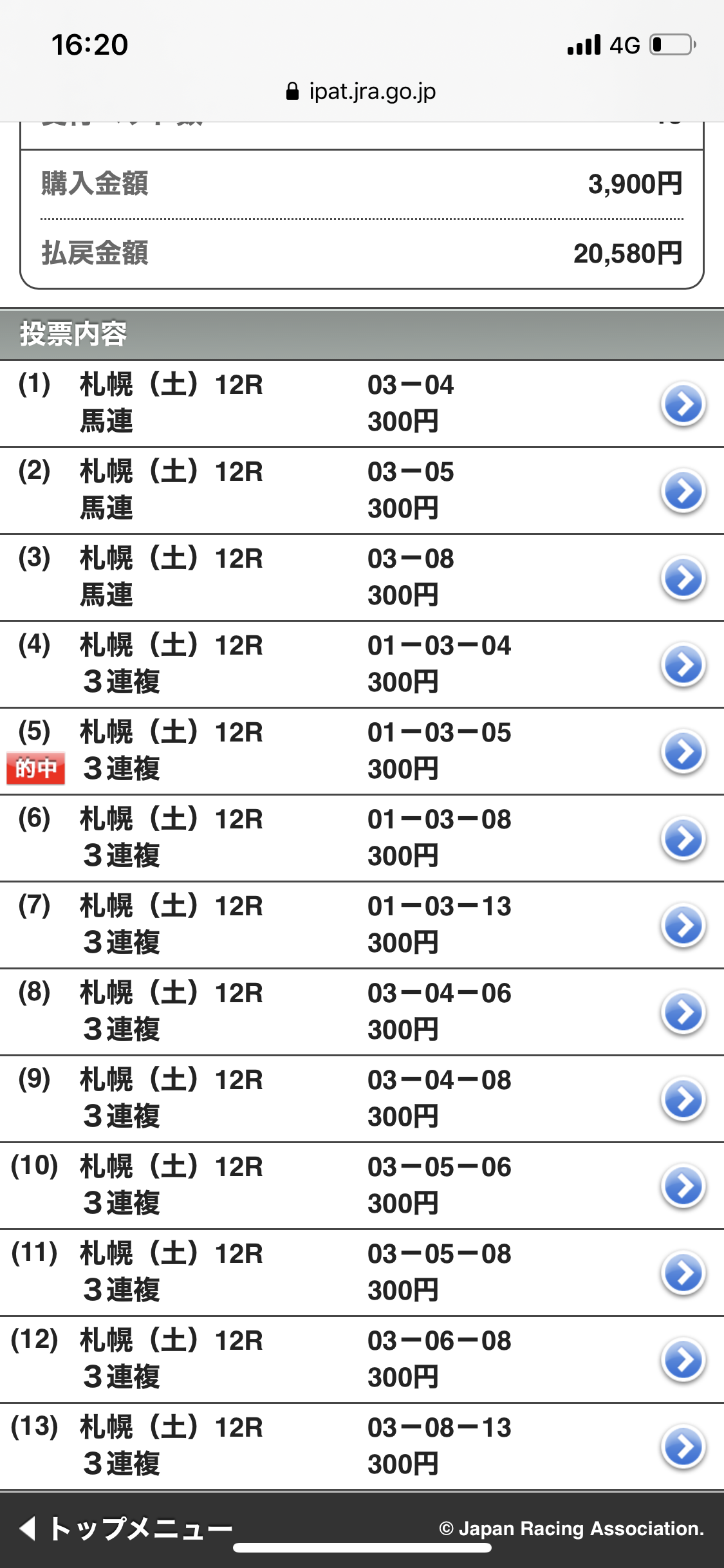 7月25日 札幌12R 3連複的中ありがとうございました!