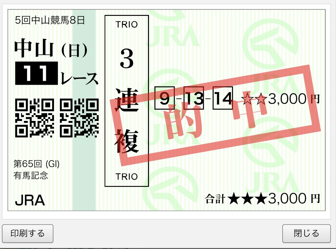 有馬は毎年当てに行く馬券(絶対当てたい)になるため独自予想を