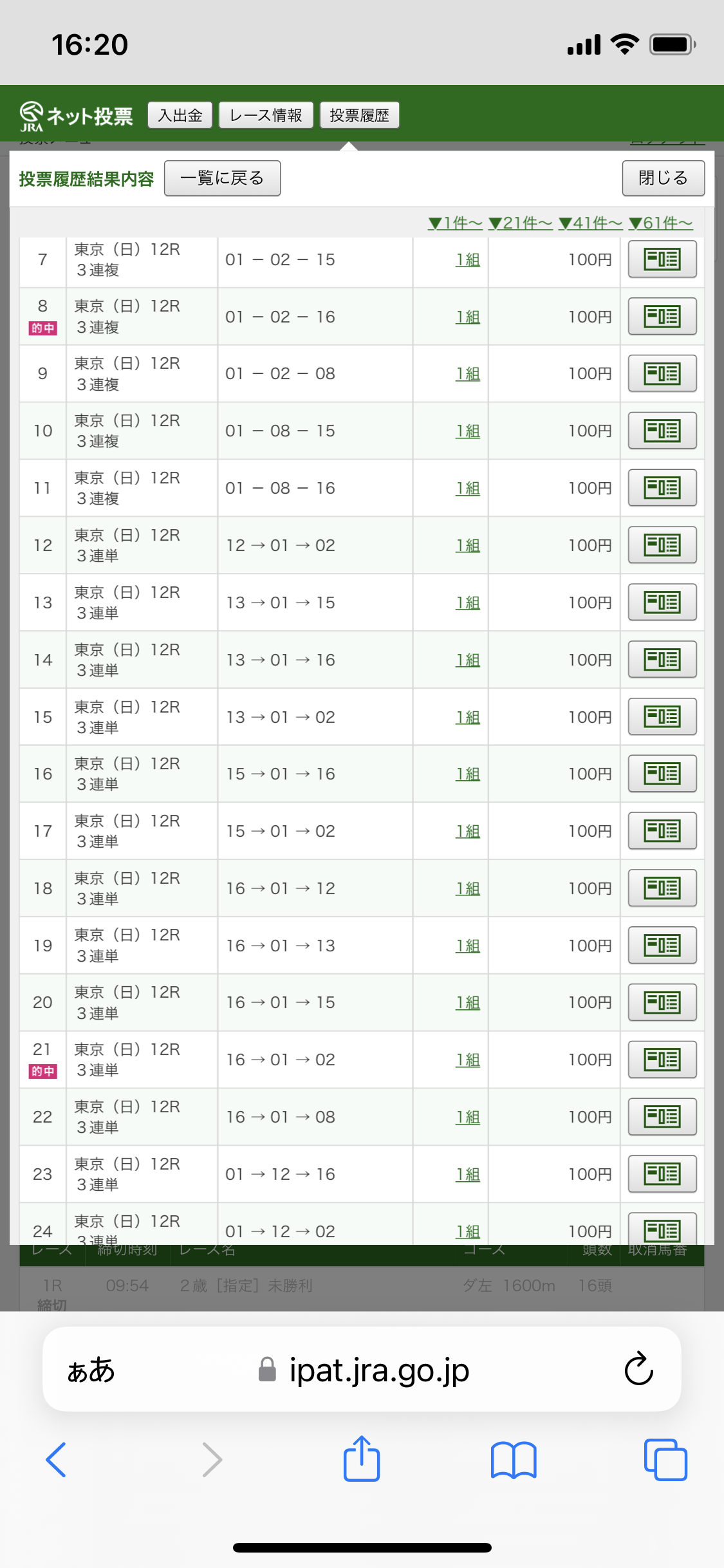 的中報告東京8、12R ポンちゃん さんから ( 23/10/21 )