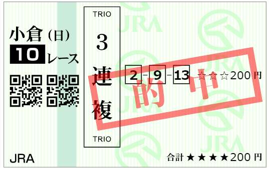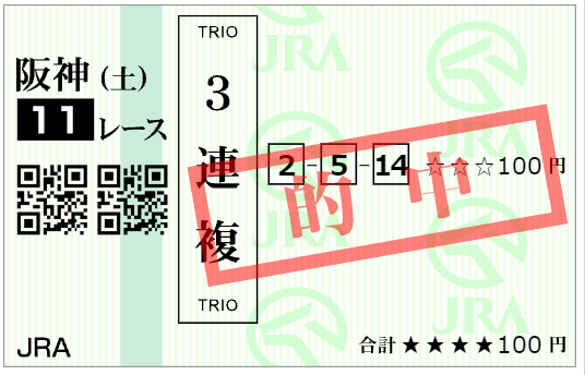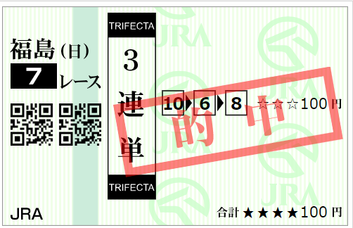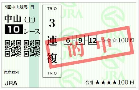 人気薄がうまく抜けてくれて高配当320倍3連複をゲットできました。ありがとうございます。会員に入会でき3年間マスターの予想をどう活用して的中に