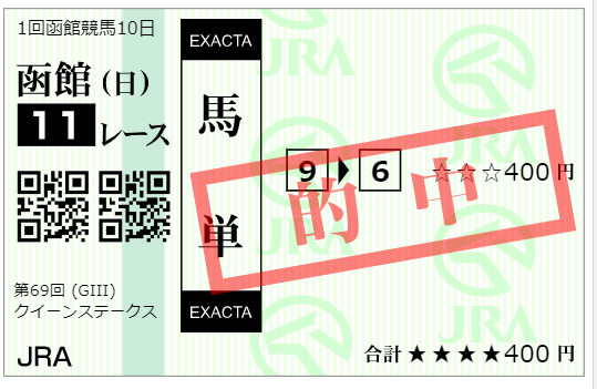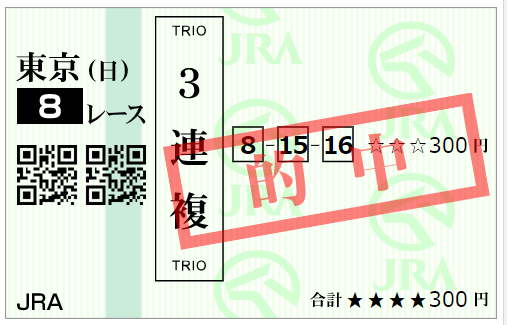 毎週いろいろ的中されてもらっているのですが久しぶりに大きい1 0万馬券がオークスG1で取れたので