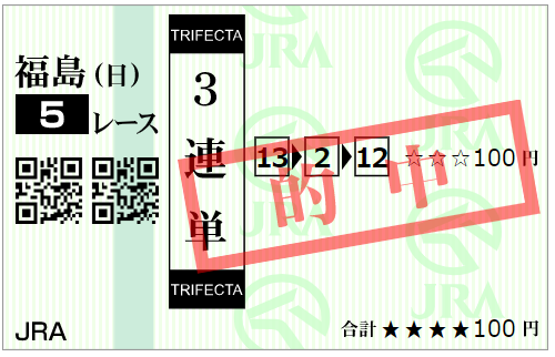 土曜日中山10Rは内枠の先行馬がきていたので紐を追加して万馬券取れました。他にいくつかいい馬券が取れました。ありがとうございます^^