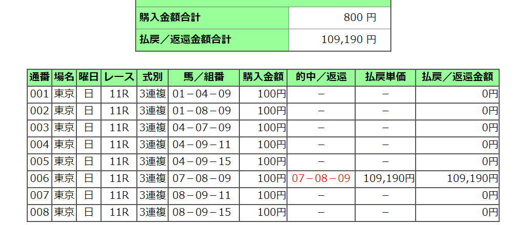 日曜日はマスターの買い目を参考に朝から最終まで1日競馬に没頭し自己予想も含めて 500倍前後の配当が3本ほど取れて1日で30万近く払い戻しできました。