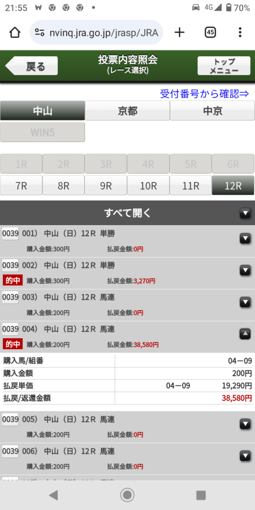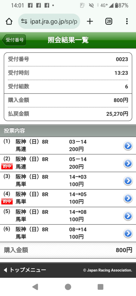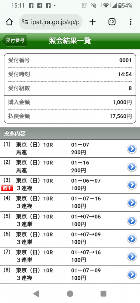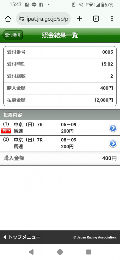 京都11レースの馬連と3連複が的中しました!
