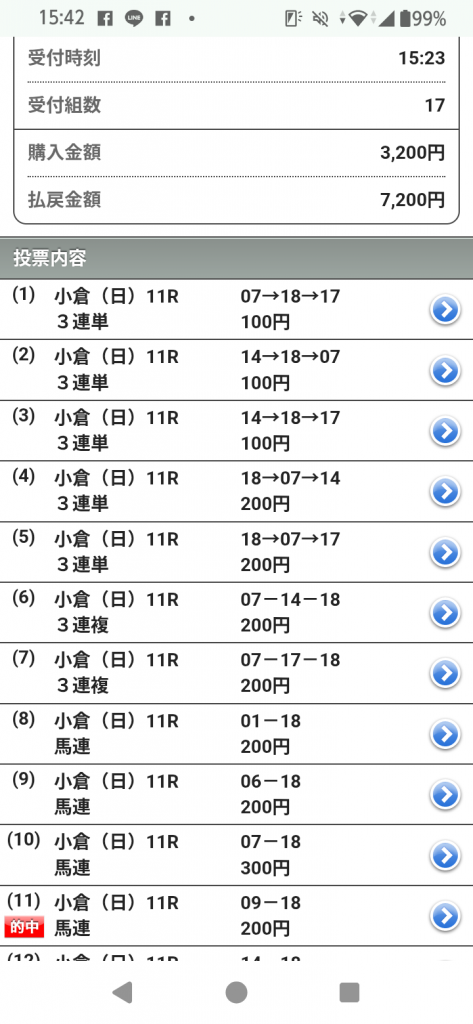 的中報告(本日の小倉11レース) ヨッシー さんから ( 25/07/06 )