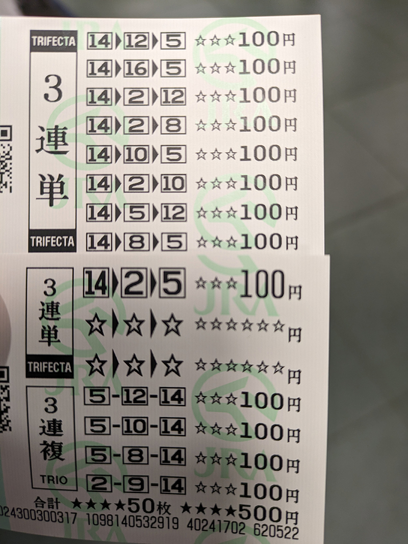阪神8Rレースが締め切りに間に合わず悲しみに暮れてましたが中山の最終で盛り返してくれました!ありがとうございます