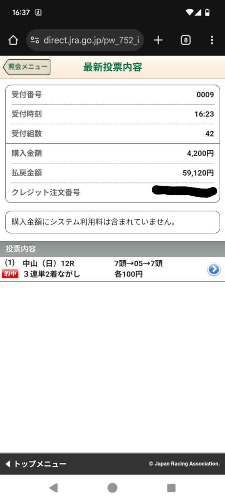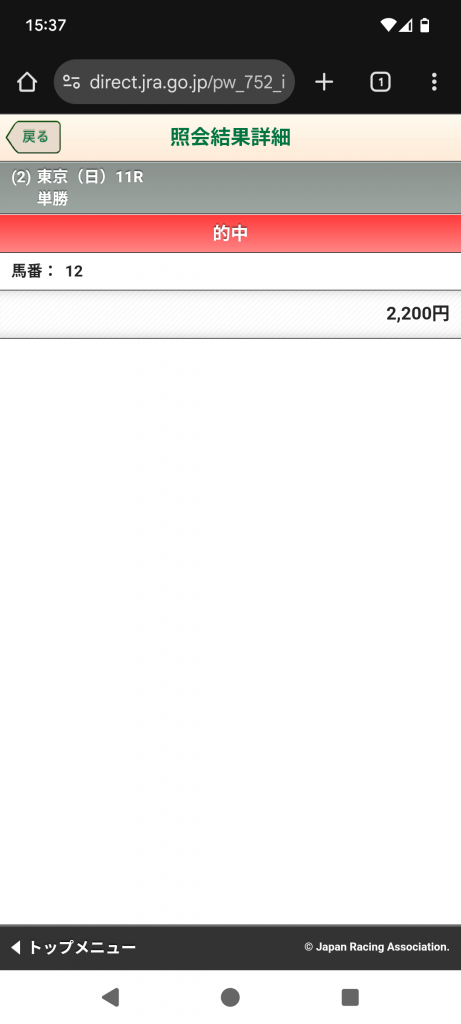 遅くなりましたが的中しました。 いつもお世話になります☺️