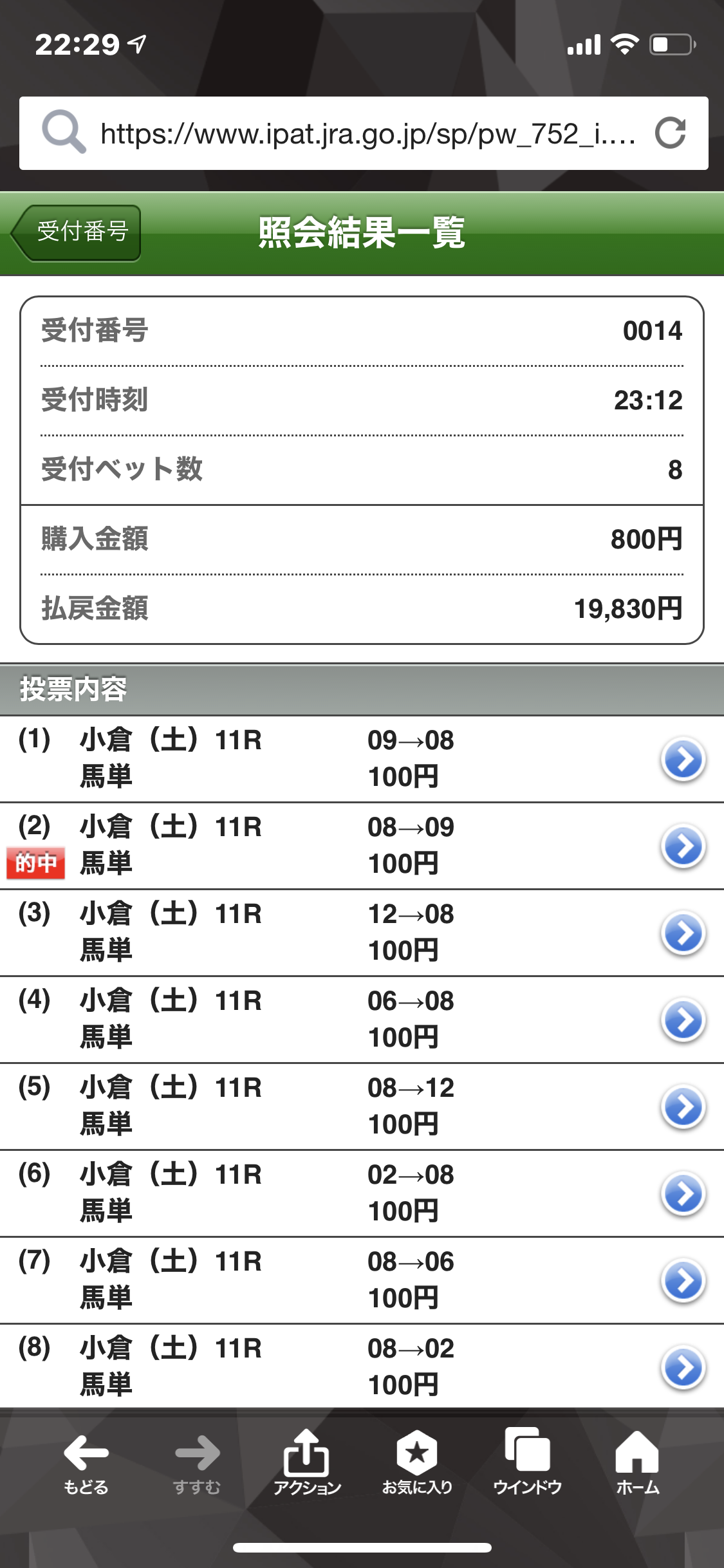 中京11R馬単的中しました。ありがとうございます。2日連続です。