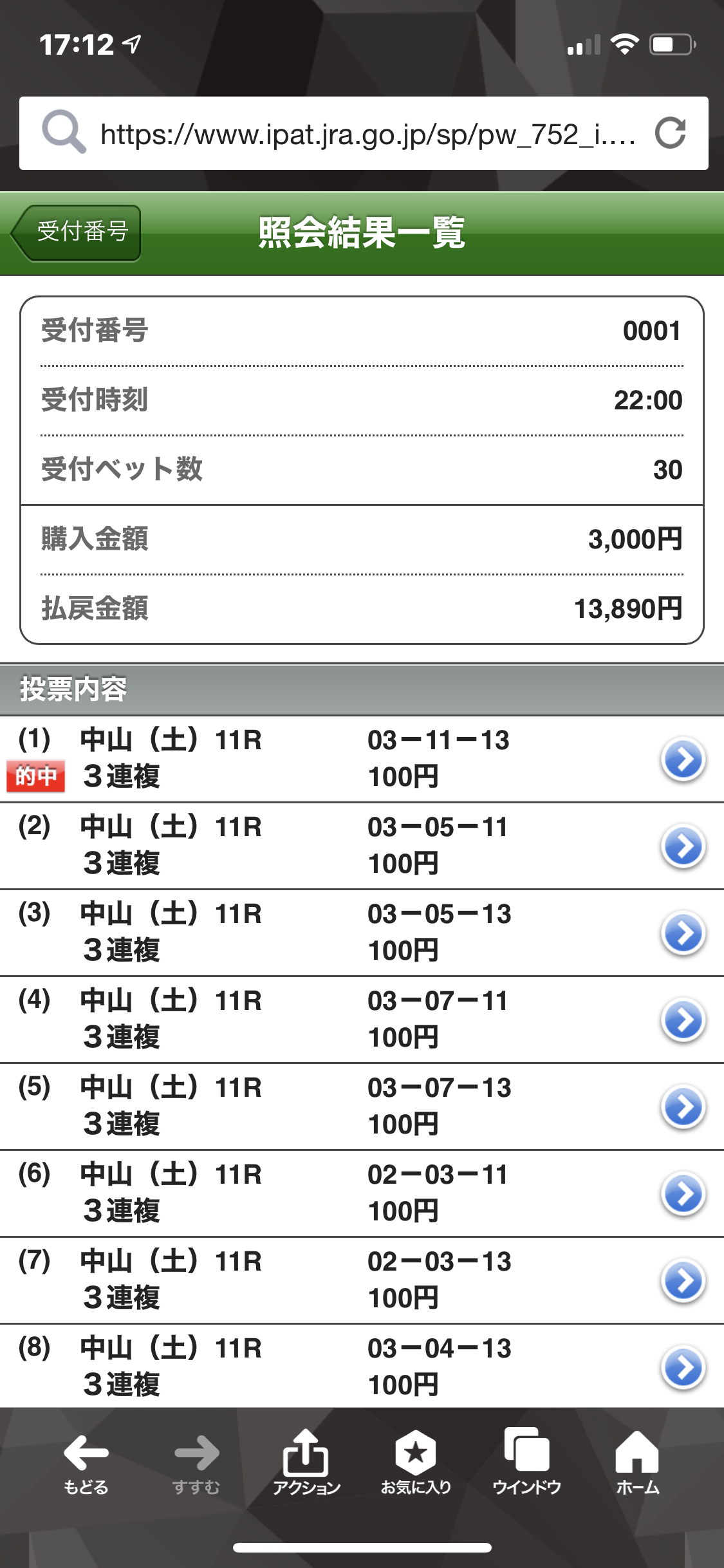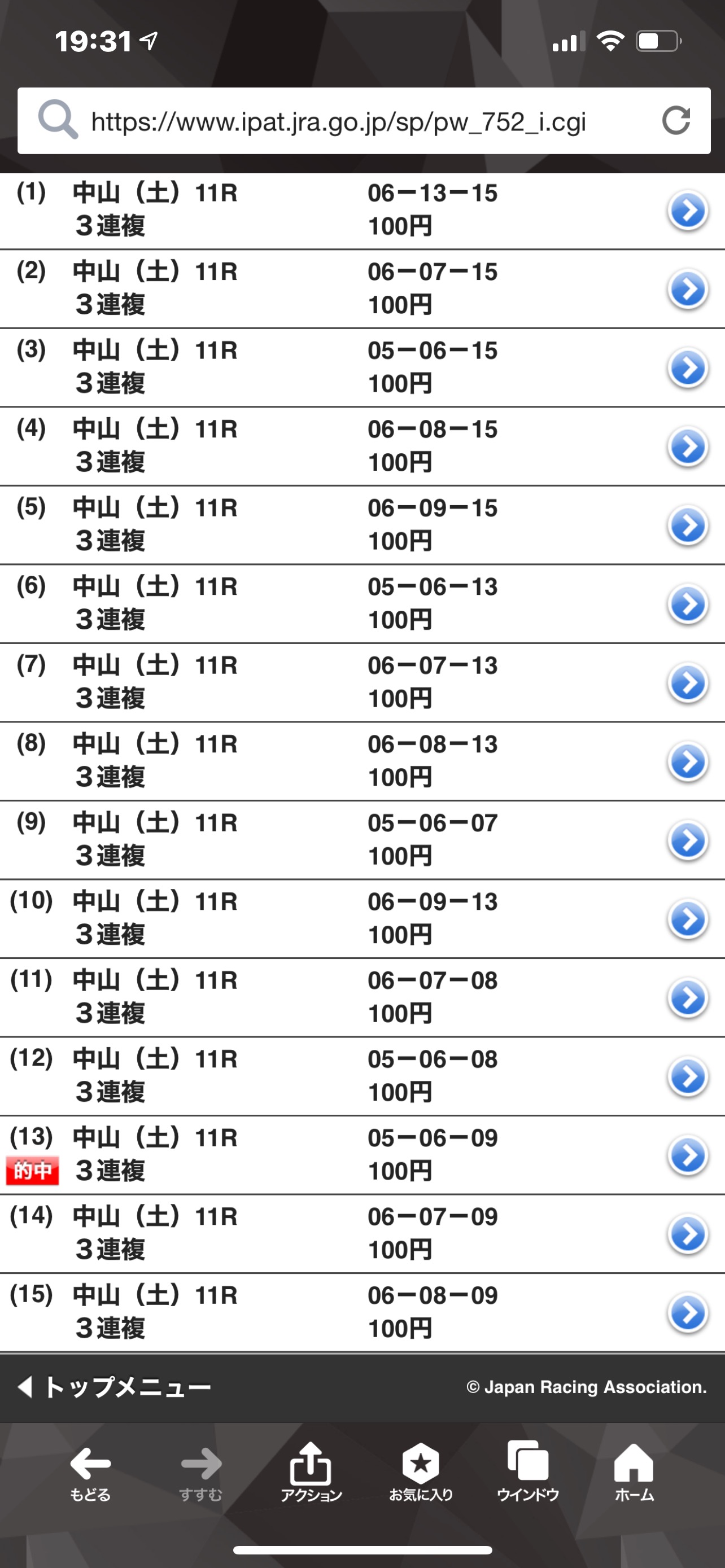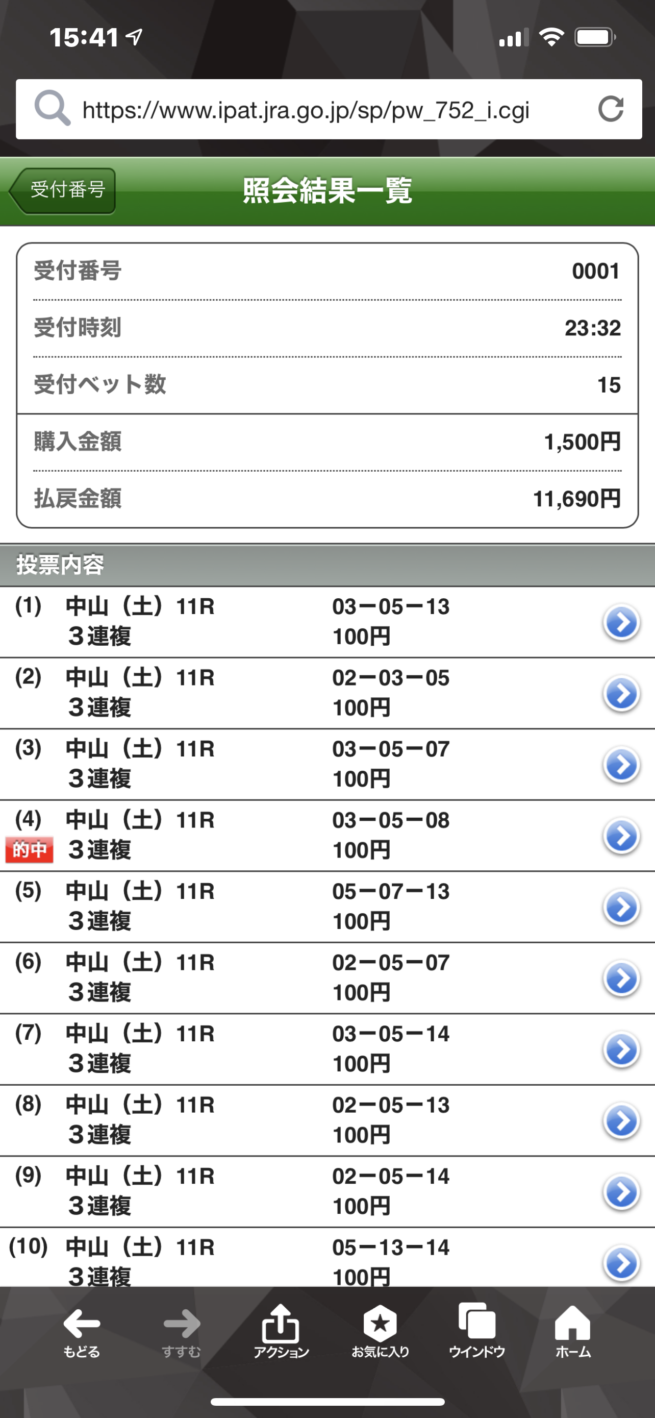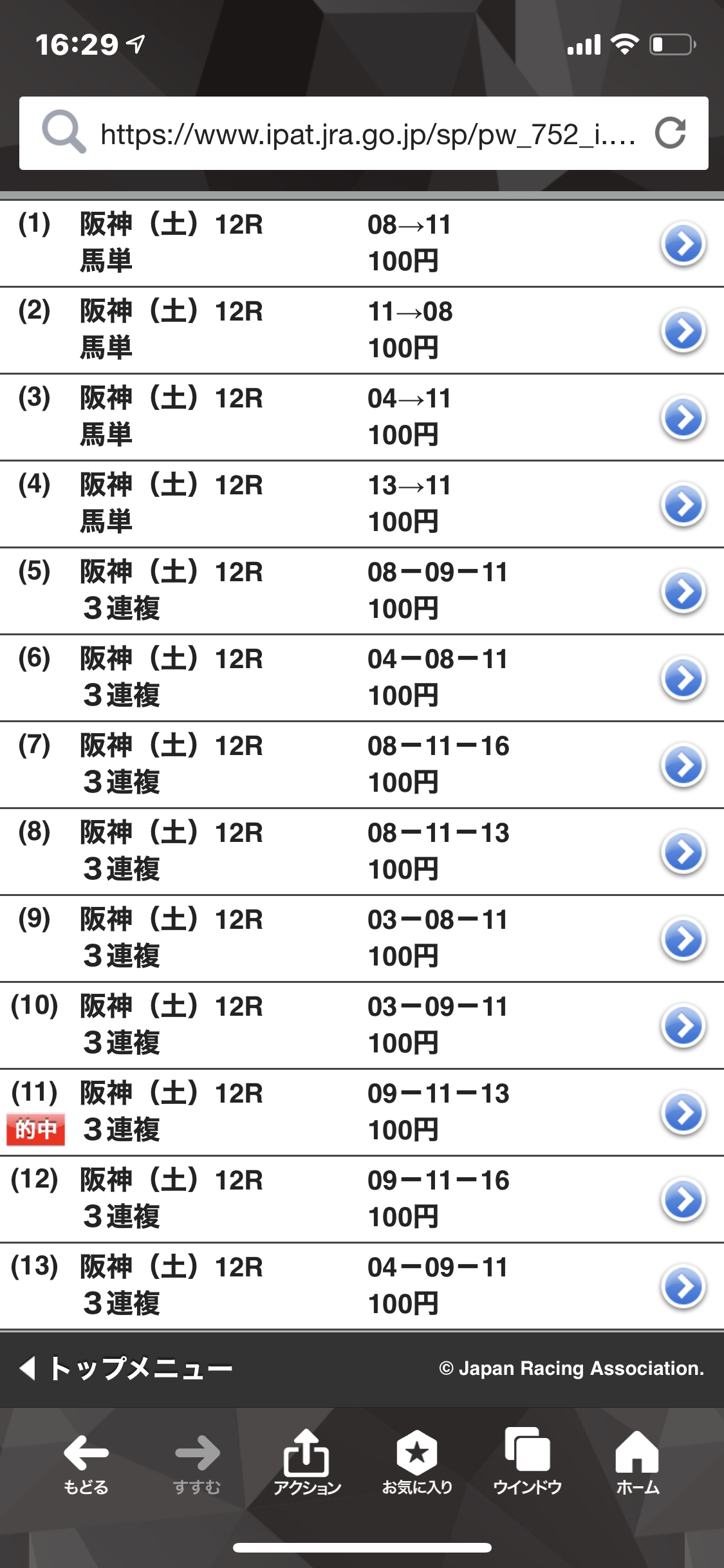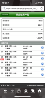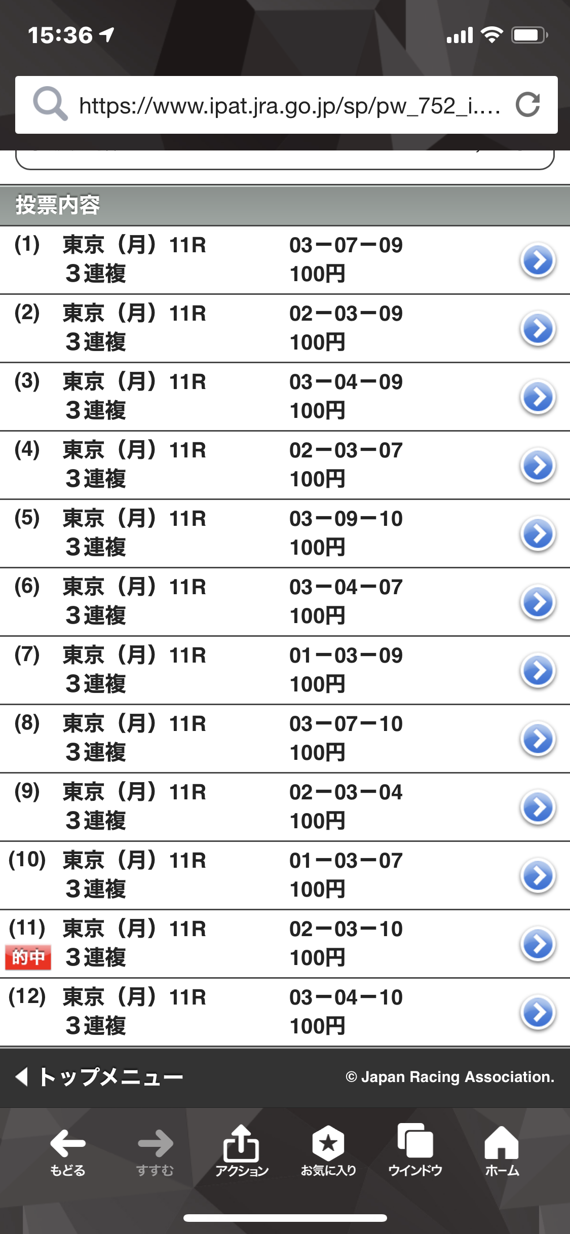 本日東京日曜日11R三連複的中です。ありがとうございます。