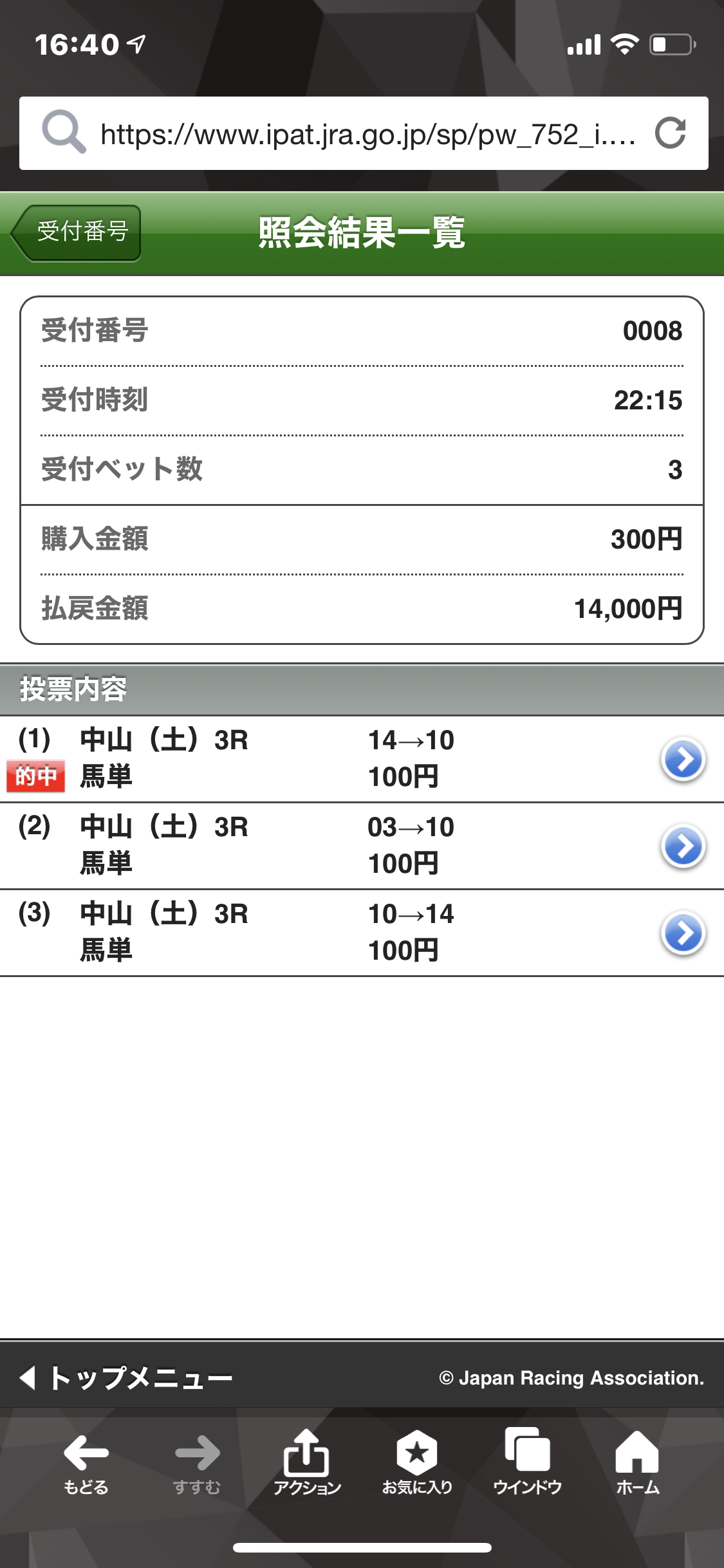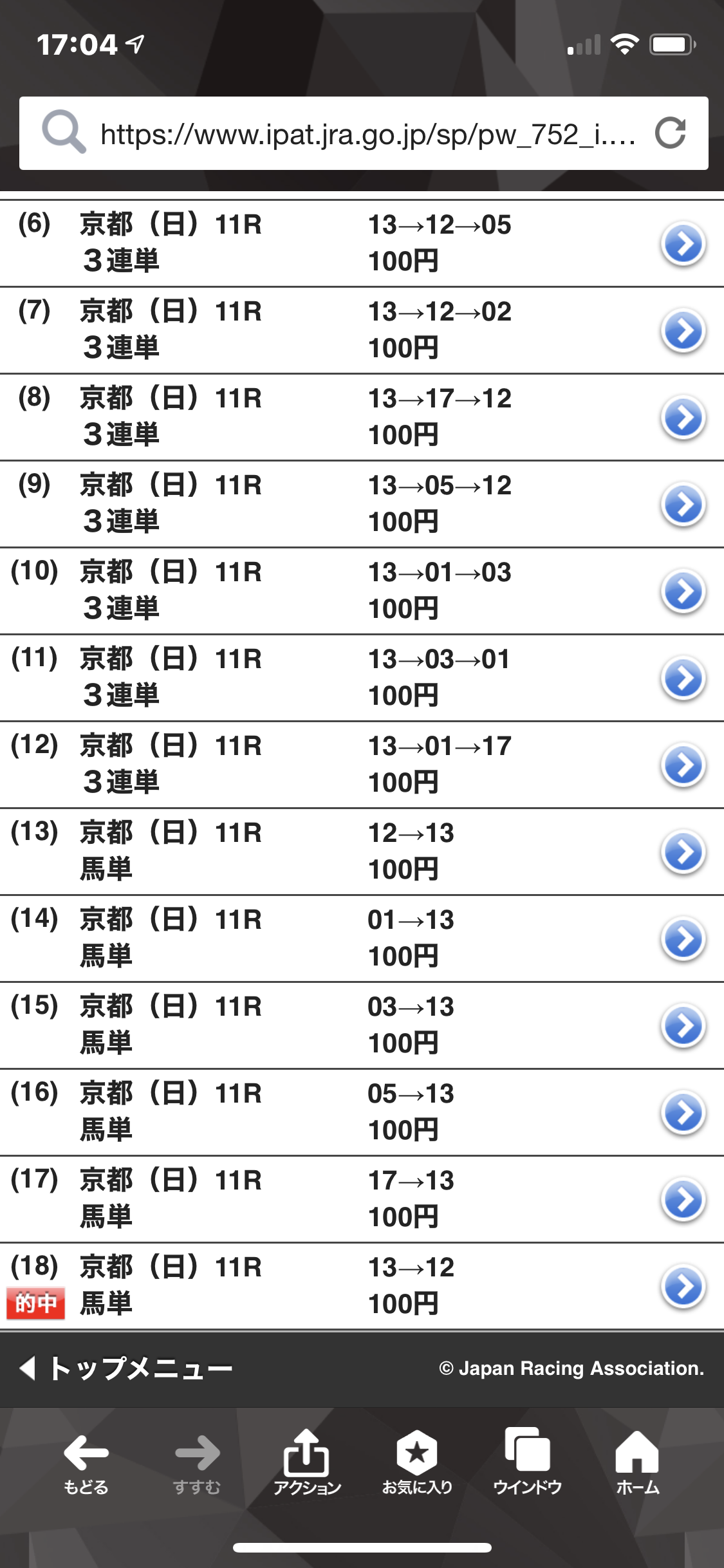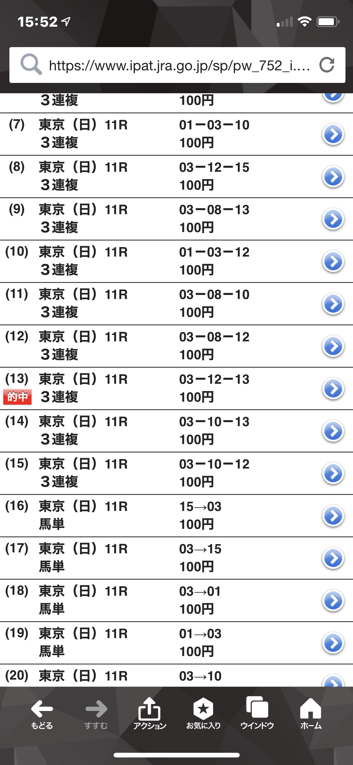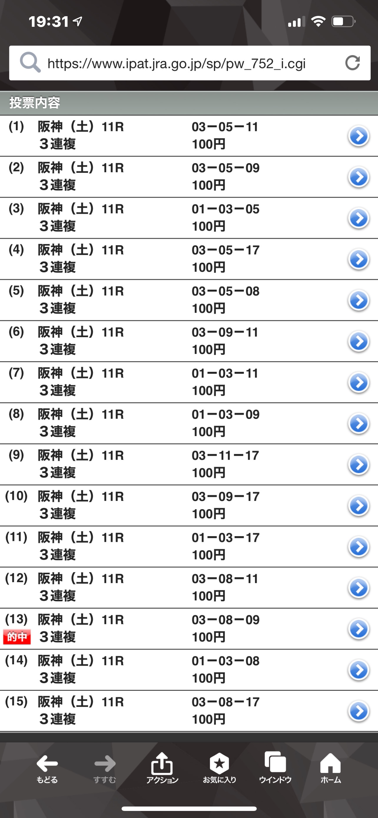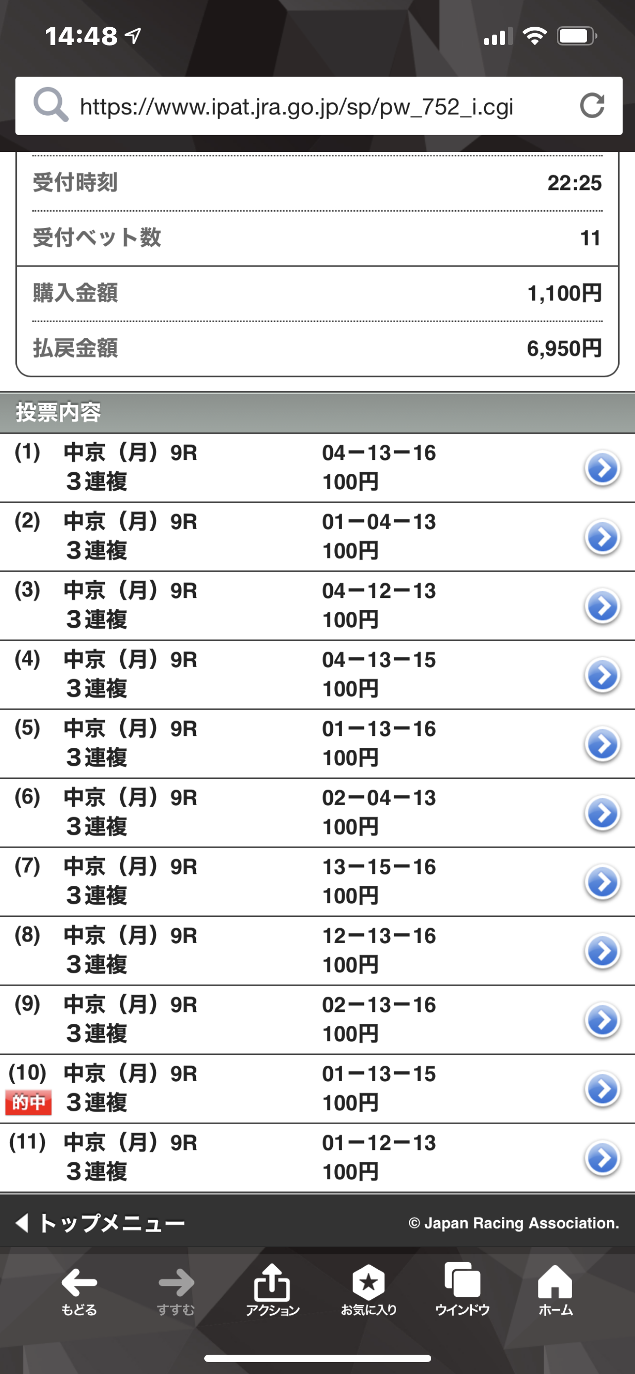 本日東京日曜日11R三連複的中です。ありがとうございます。