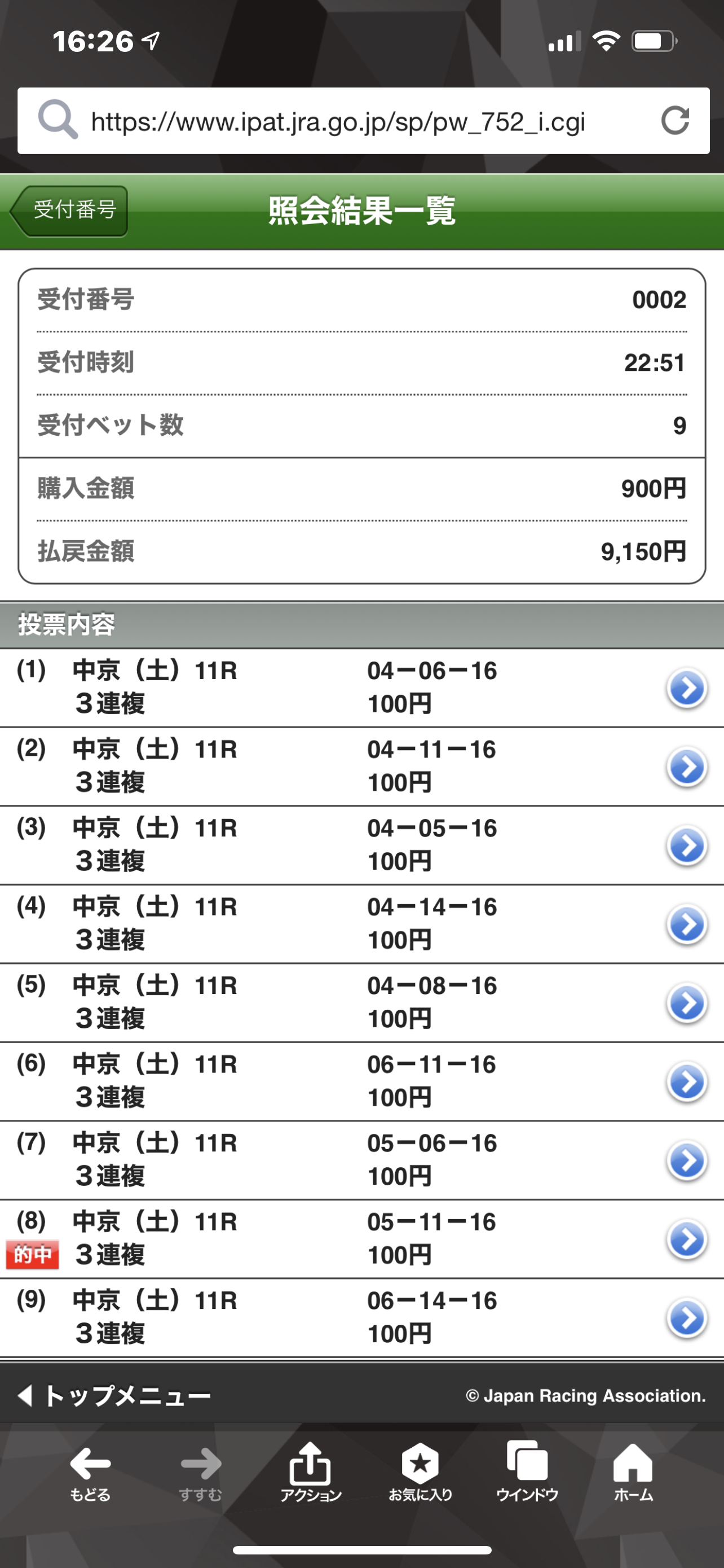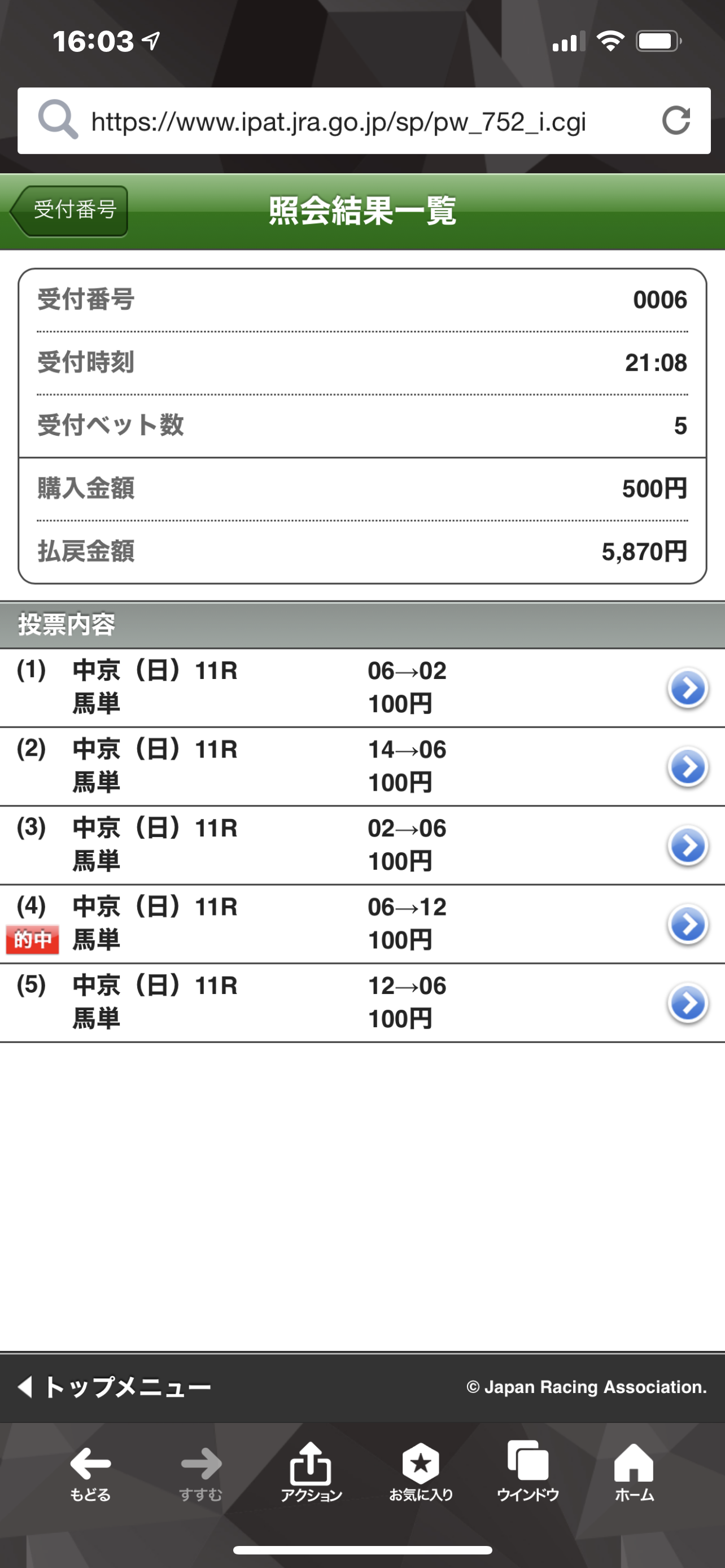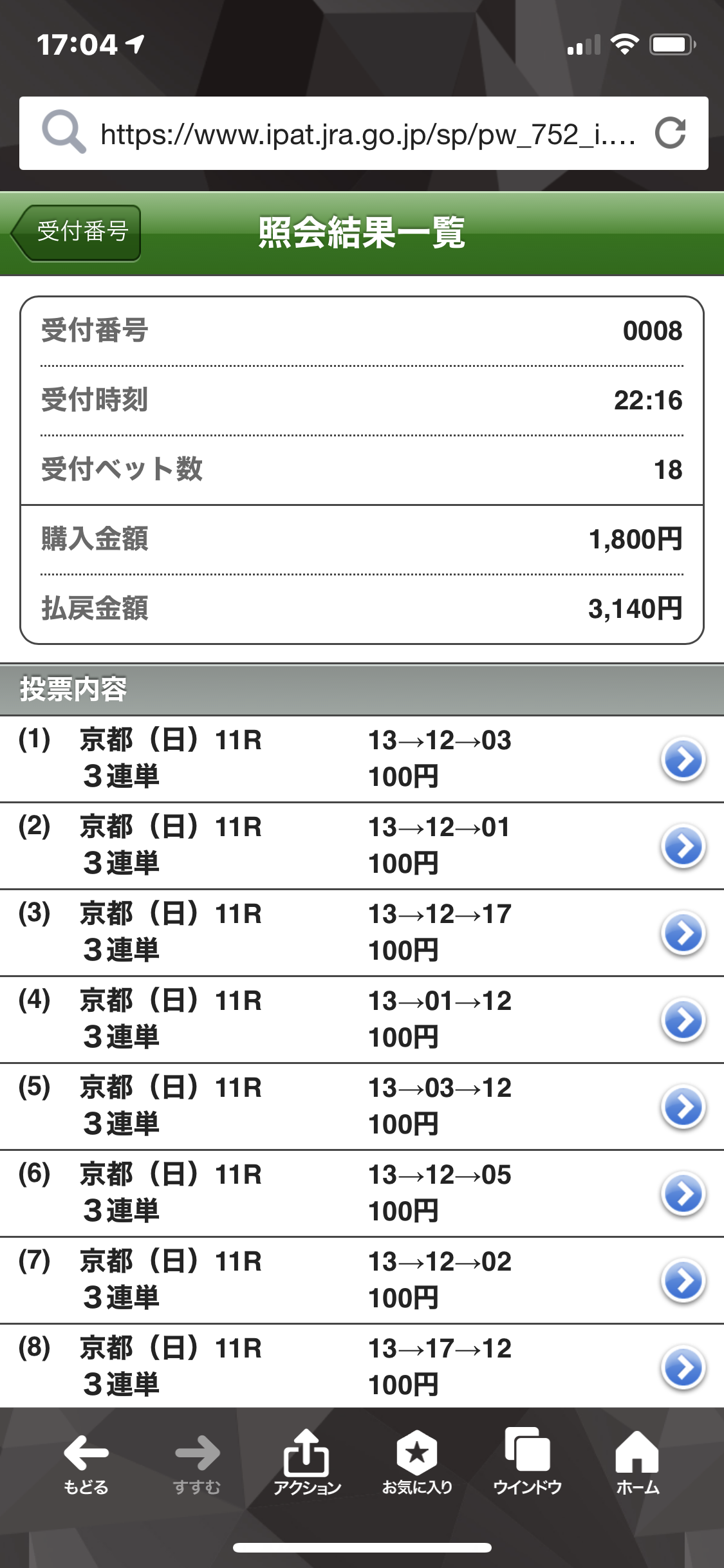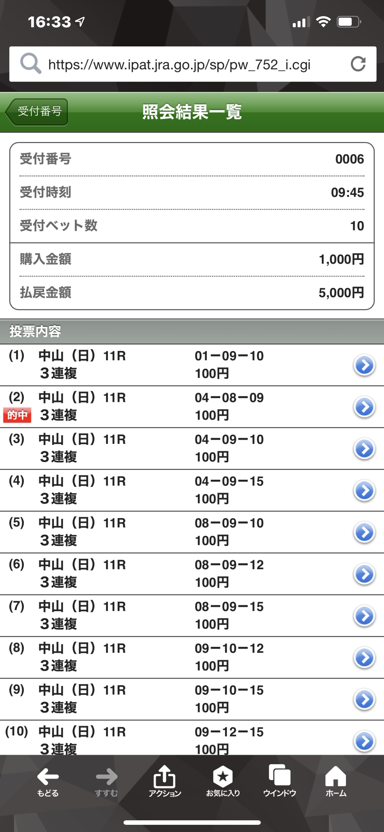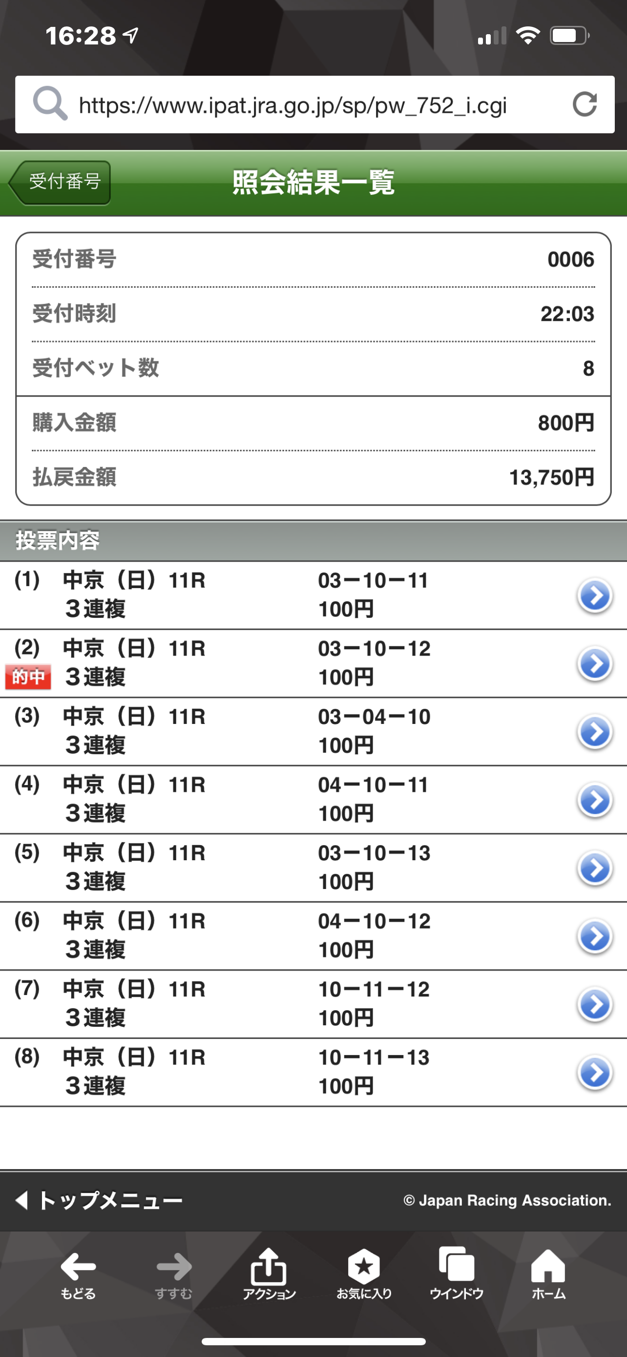本日東京日曜日11R三連複的中です。ありがとうございます。