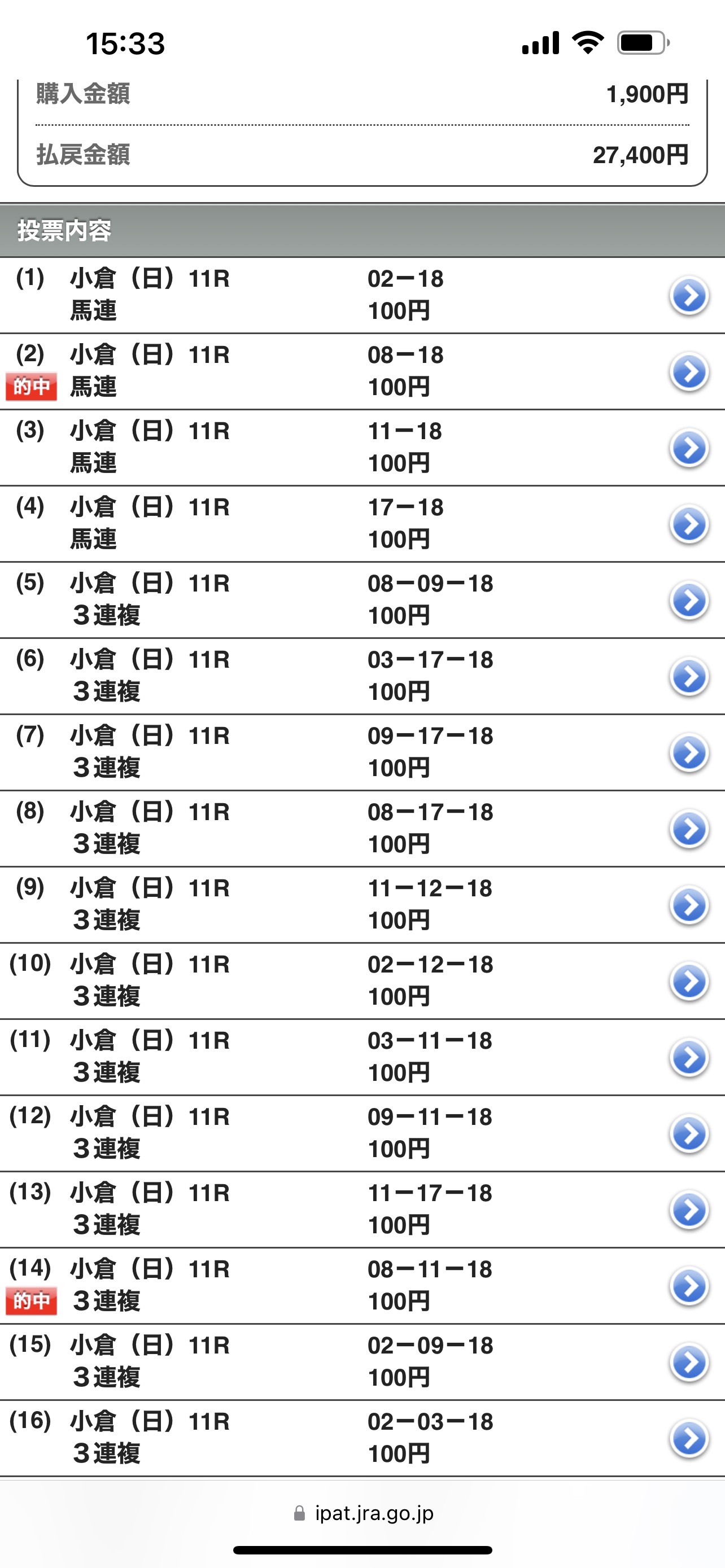 いつもありがとうございます。今月から参加させていただいております。日曜小倉11Rありがとうございました。×含め3連複までいただきました。今後ともよろしくお願いします。