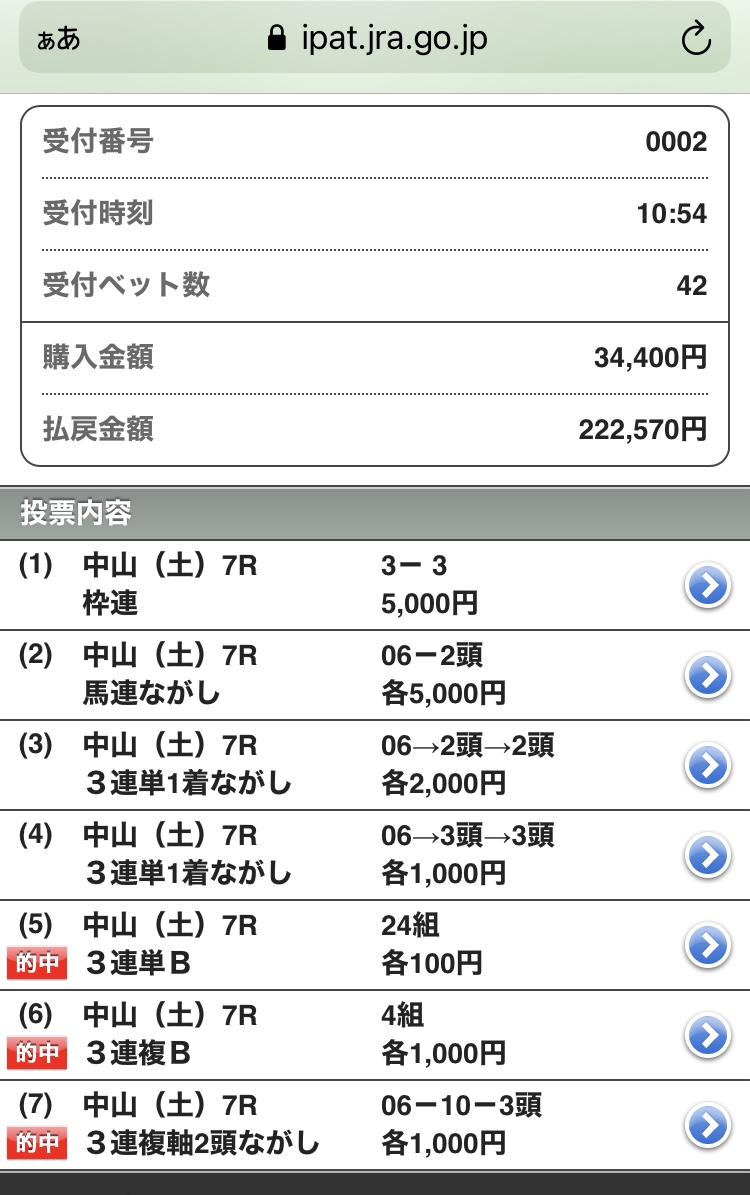 取らせていただきました。期待値高い勝負レースで対抗を穴D扱いで追加購入したので馬連も三連単も取れつつ、三連複も複数パターンの仕掛けをごっそり回収できました。