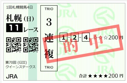 そして、札幌クイーンステークスも三連単的中いたしました!