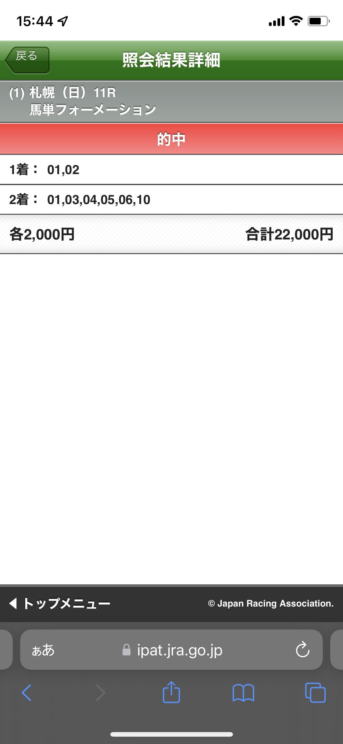 札幌7レース穴C馬単&三連単見事的中させていただきました!単勝も取りました!