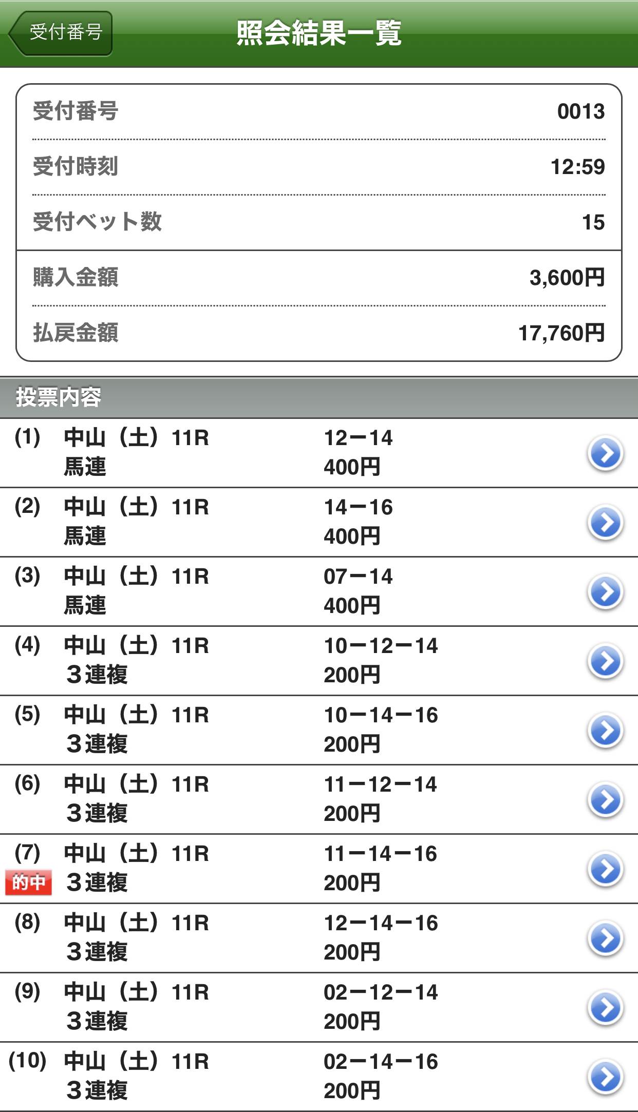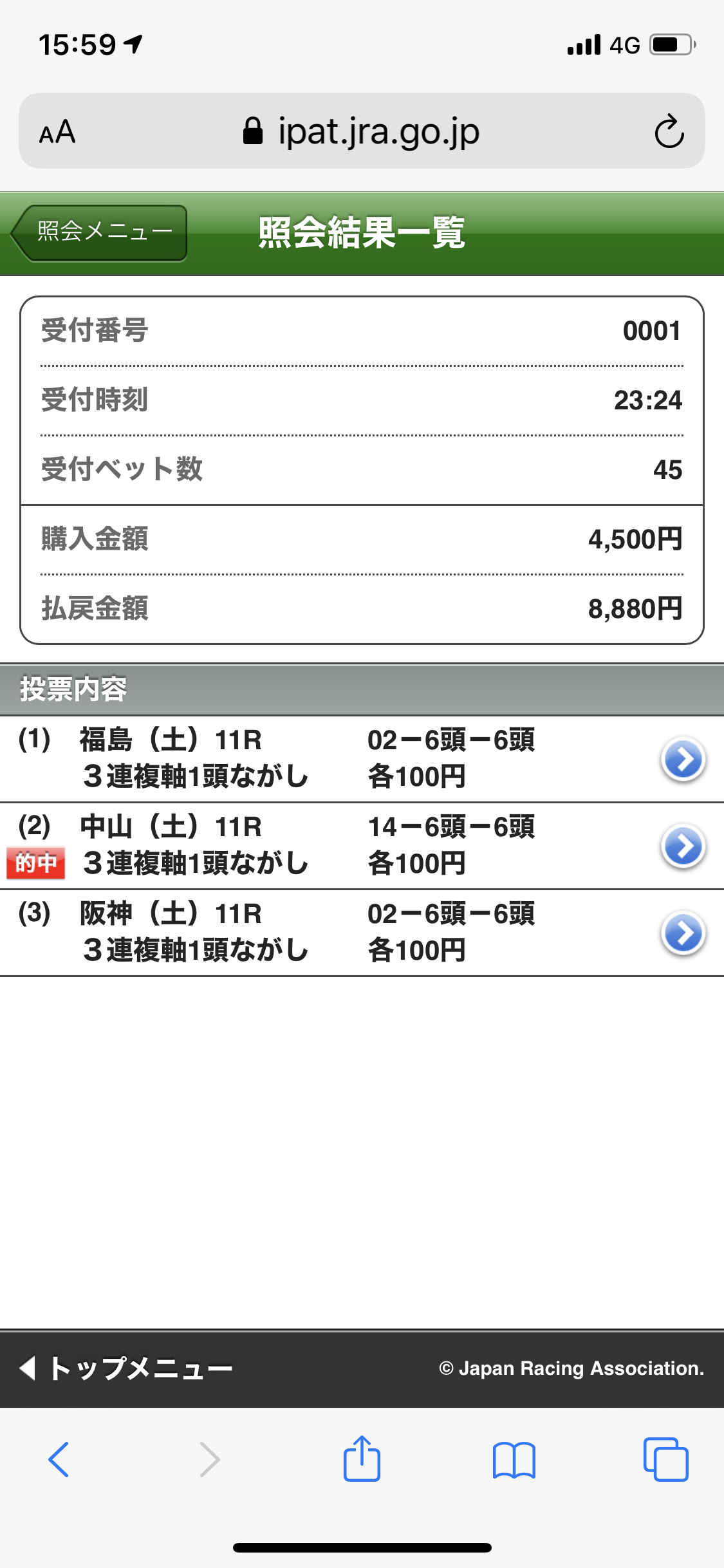 3連複100円ですがとれました。ありがとう