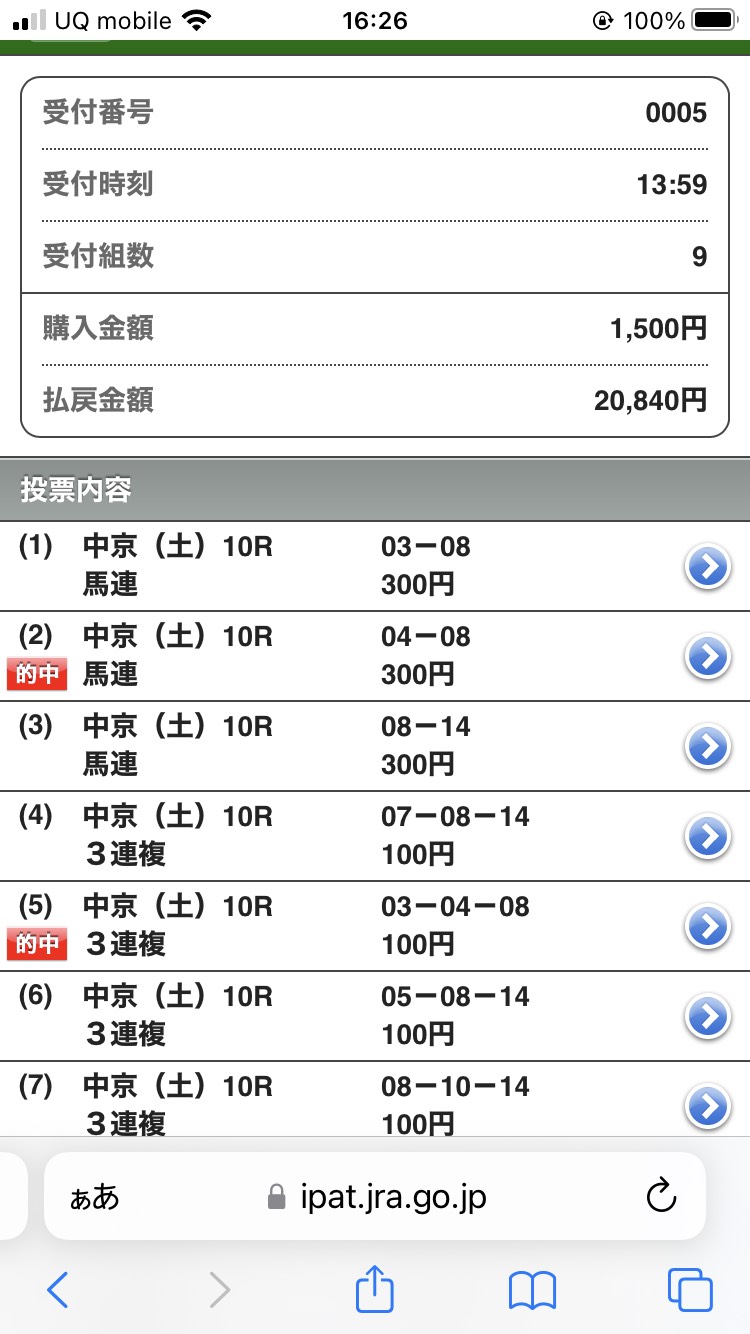 予想屋マスターの予想を使って馬券を買いました。馬連25.3倍🎯(3点)