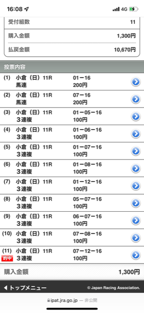 小倉、阪神、東京、3場メインとも馬単的中させていただきました