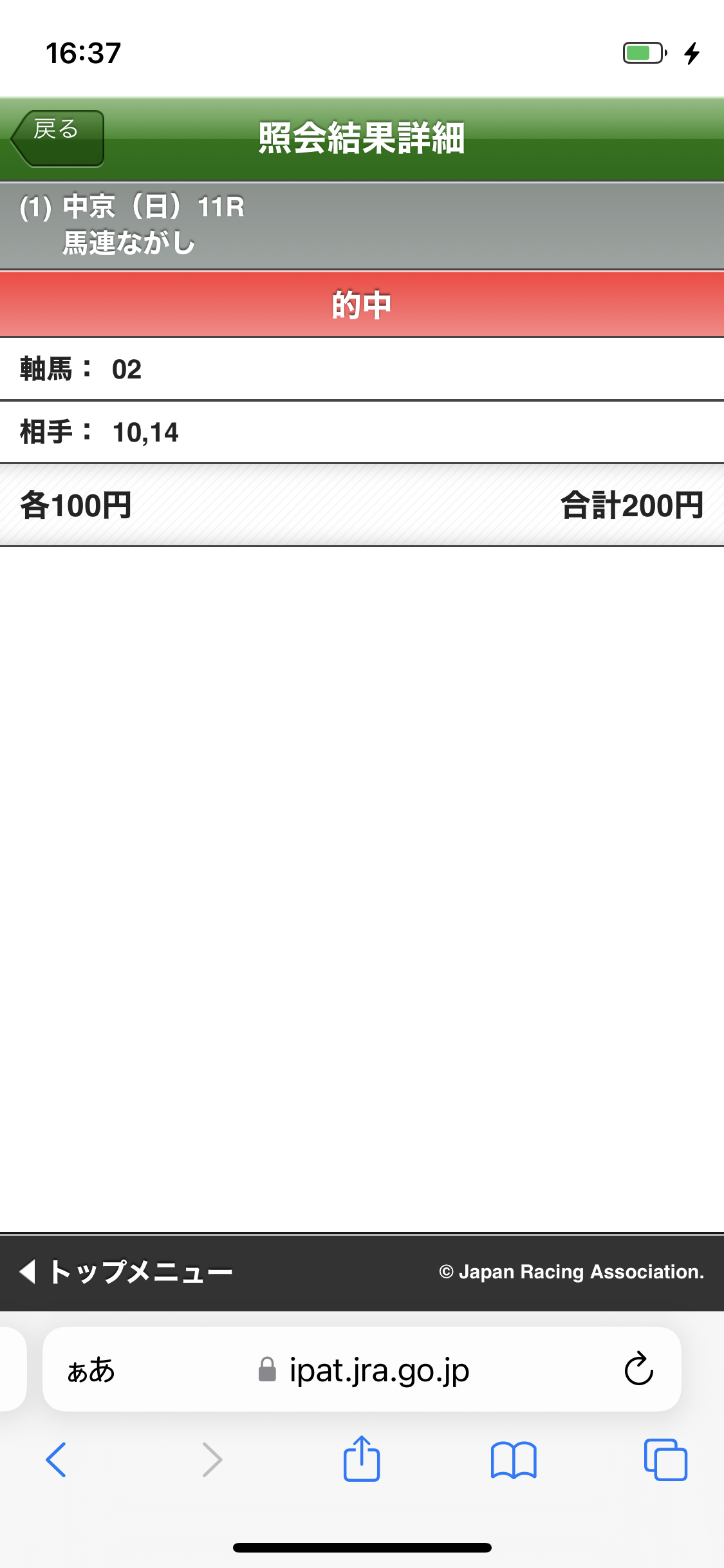 買い目で唯一の馬単万馬券ガツンと取らせていただきましたよ!ありがとうございます!