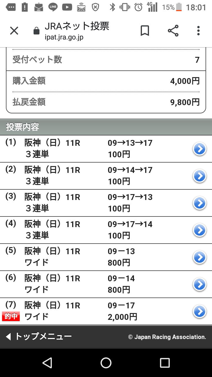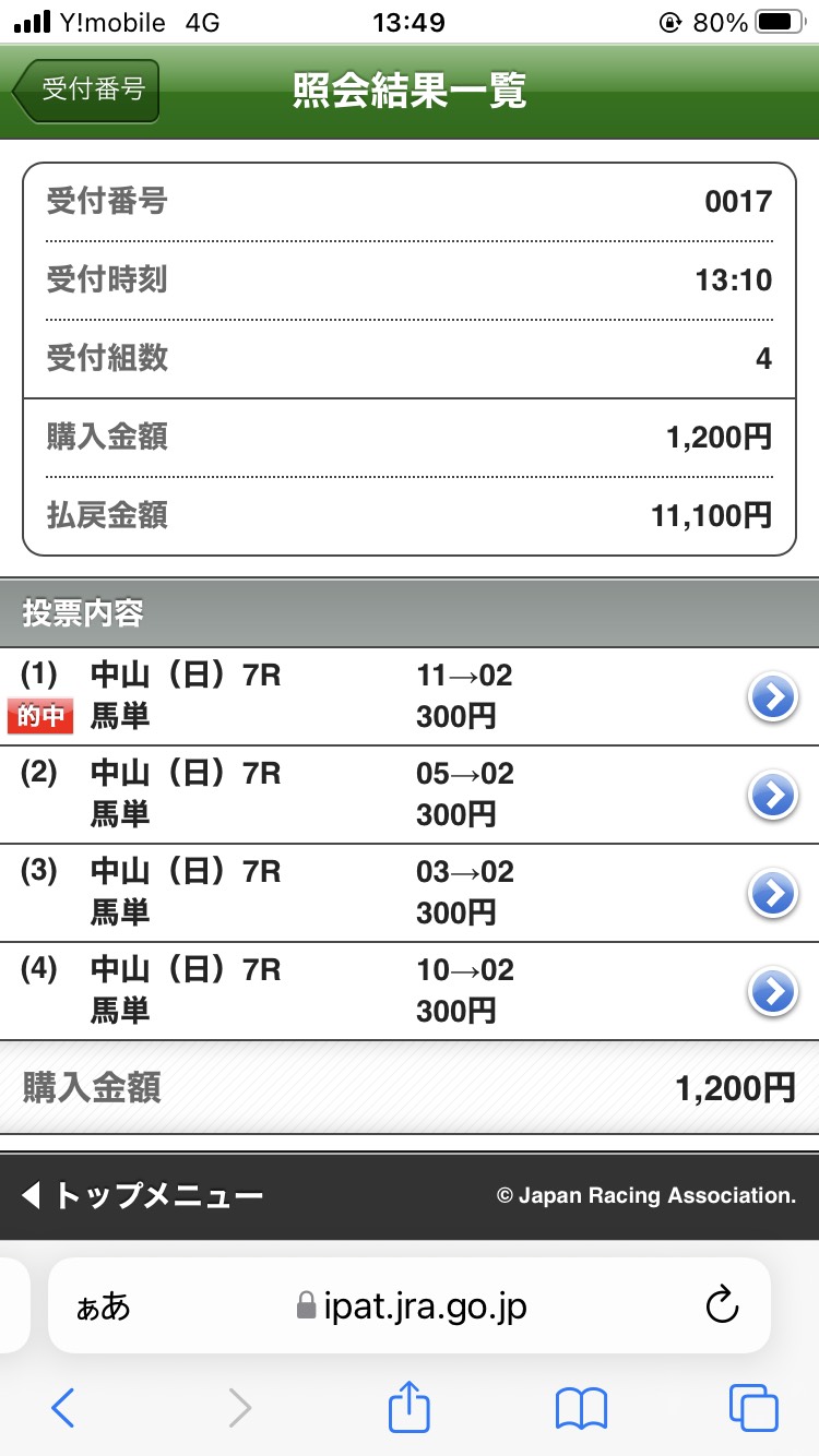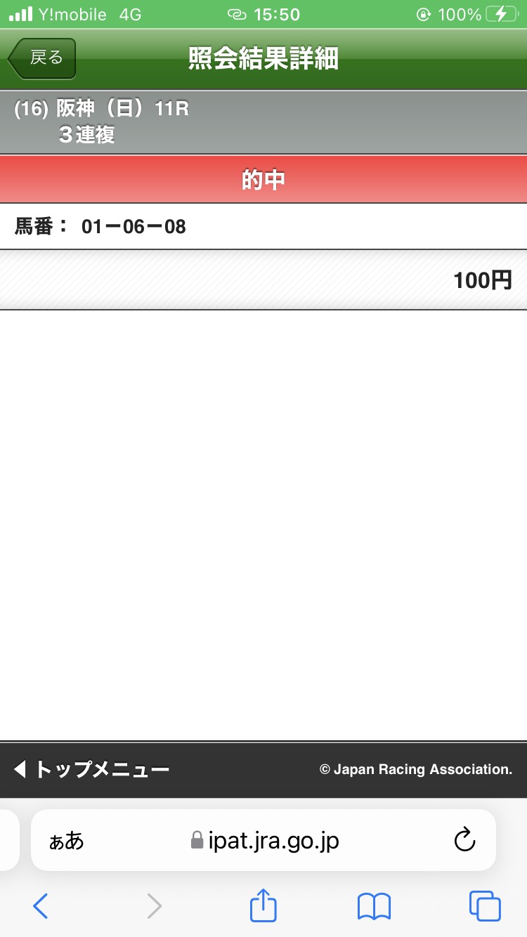 桜花賞、穴C(穴D)の3連複えらい安いですね。取れましたので文句なしですが❗ 阪神最終も穴Dで取れました。ありがとうございました。